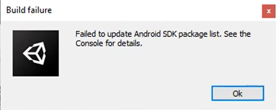 failed to update android sdk package list. see the console for details