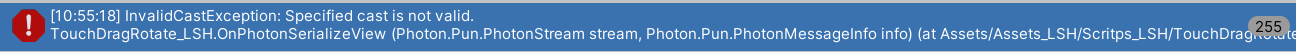 유니티에서 Photon 멀티플레이어를 구현하는 과정 중 타 플레이어의 움직임을 받는 과정에서 아래와 같은 에러가 났다.