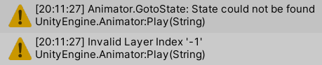 유니티 에러 error : Animator.GotoState: State could not be found, Invalid Layer Index '-1'
