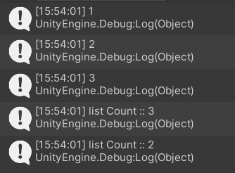 //현재 리스트 개수 Debug.Log("list Count :: " + list.Count);